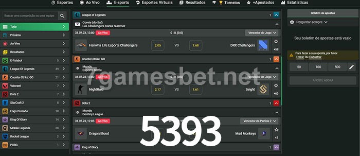 A aposta 5393 oferece aos jogadores a experiência mais conveniente de apostas em eSports!